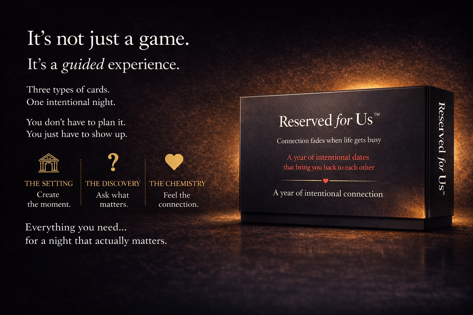 Designed for you to reconnect, one intentional date at a time.